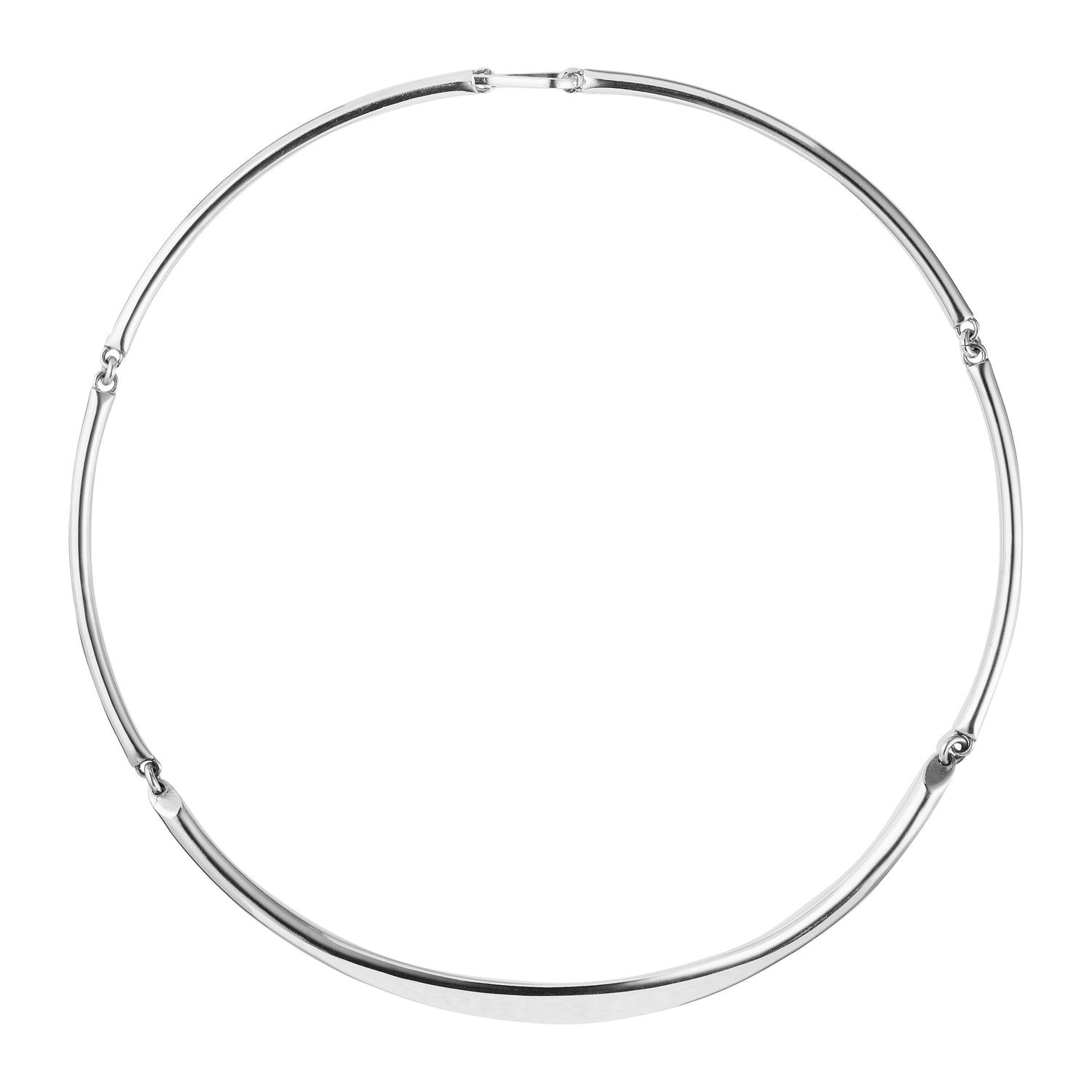 Each necklace is meticulously assembled in Poland: solid 925 sterling silver tubes are precision-cut, hand-shaped, and soldered to achieve a flawless linear silhouette. The architectural connectors and lobster-claw clasp are cast using the sand-casting technique, then cleaned and polished to a brilliant shine. On the clasp, our discreet hand-engraved logo certifies genuine artisan workmanship.