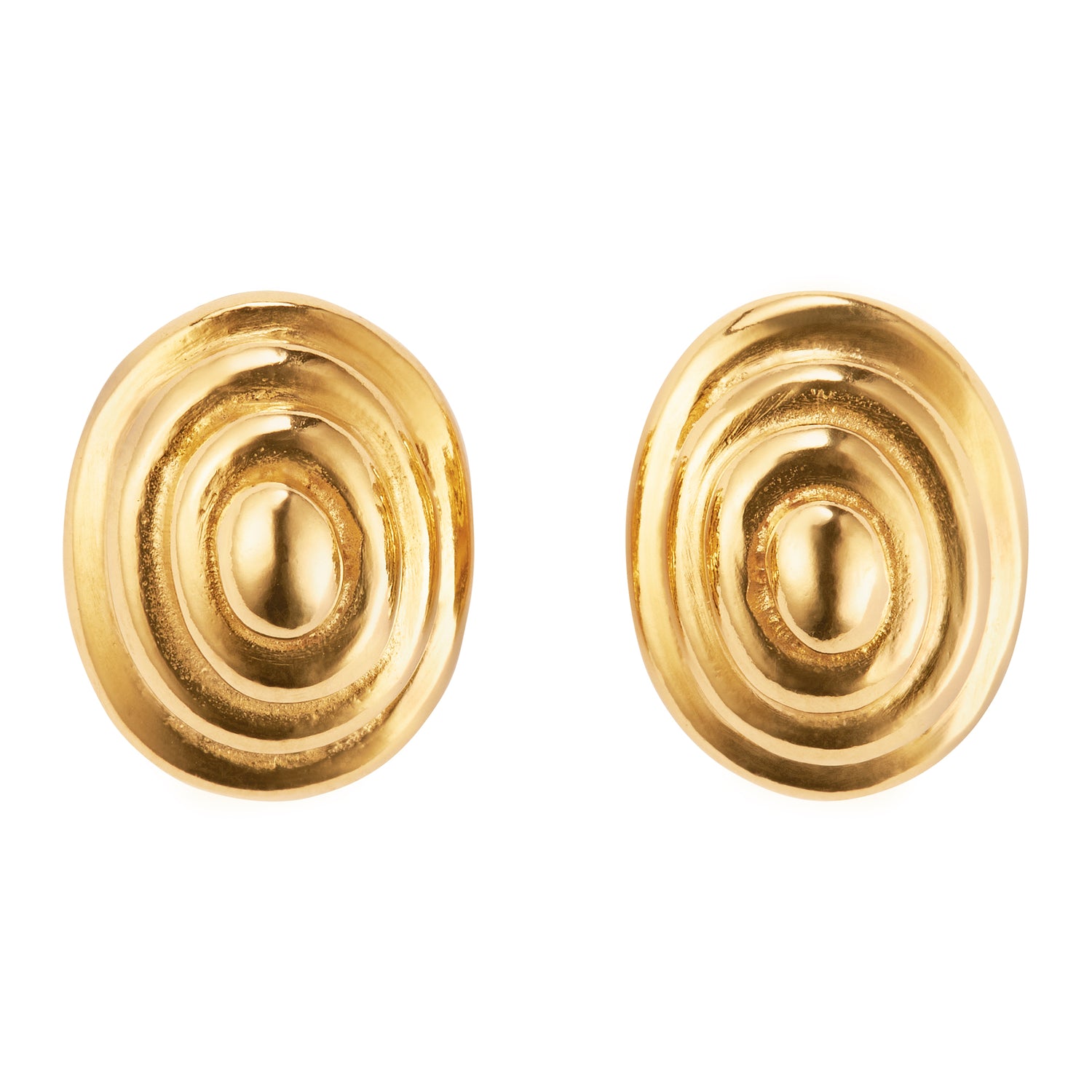 Elegant, sculptural, and intrinsically modern — the Coli Earrings reinterpret Julia Keilowa’s signature tray (“taca”) motif in warm, golden tones. Their smooth, circular form with a gently raised rim evokes the clean lines and functional beauty of Keilowa’s modernist tableware, now elevated by a luxurious gold finish.