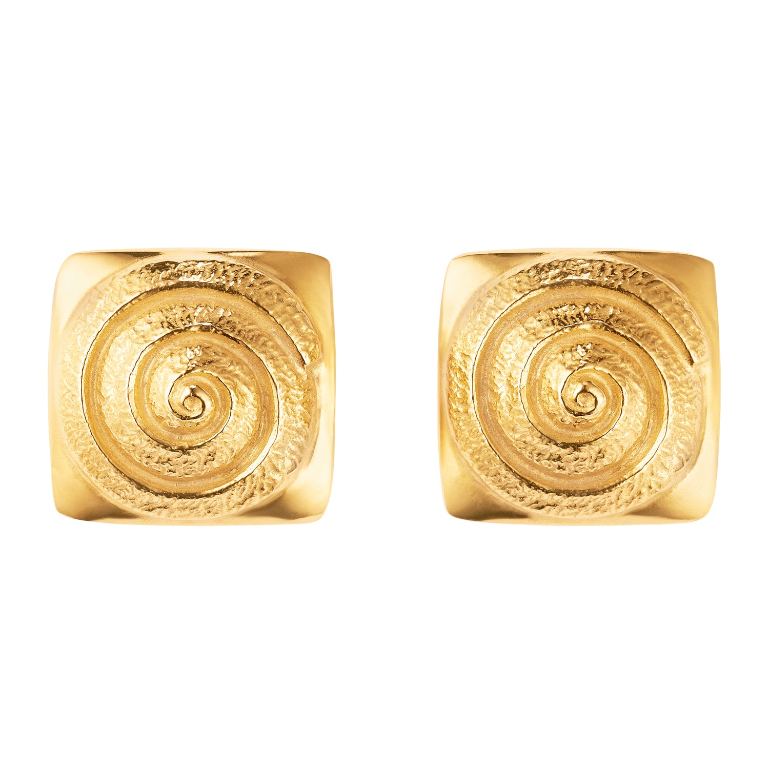 Each pair is meticulously made using the lost-wax casting technique: first carved in wax by hand, then cast in 925 sterling silver, and finally plated with a durable 4-micron layer of 24k gold vermeil. On the reverse side of every earring, our signature hand-carved logo attests to the artisan craftsmanship and uniqueness of each piece.