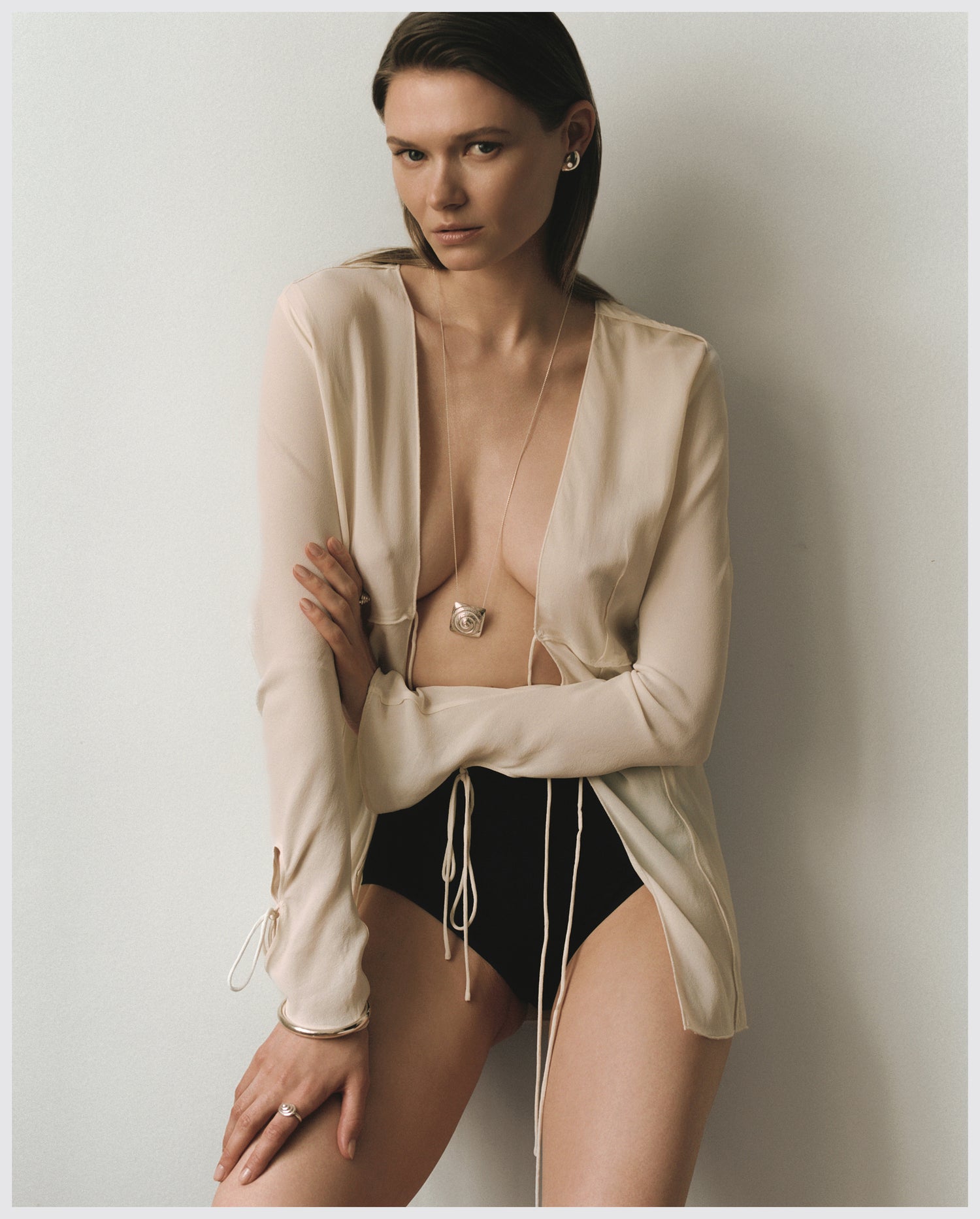Sculptural, flowing, and inherently modern — the Keilowa Necklace reimagines Julia Keilowa’s motif as a long, statement-making pendant. Suspended from an 80 cm fine sterling chain, the gently spiraled form drapes gracefully over the décolletage, marrying avant-garde geometry with wearable elegance.