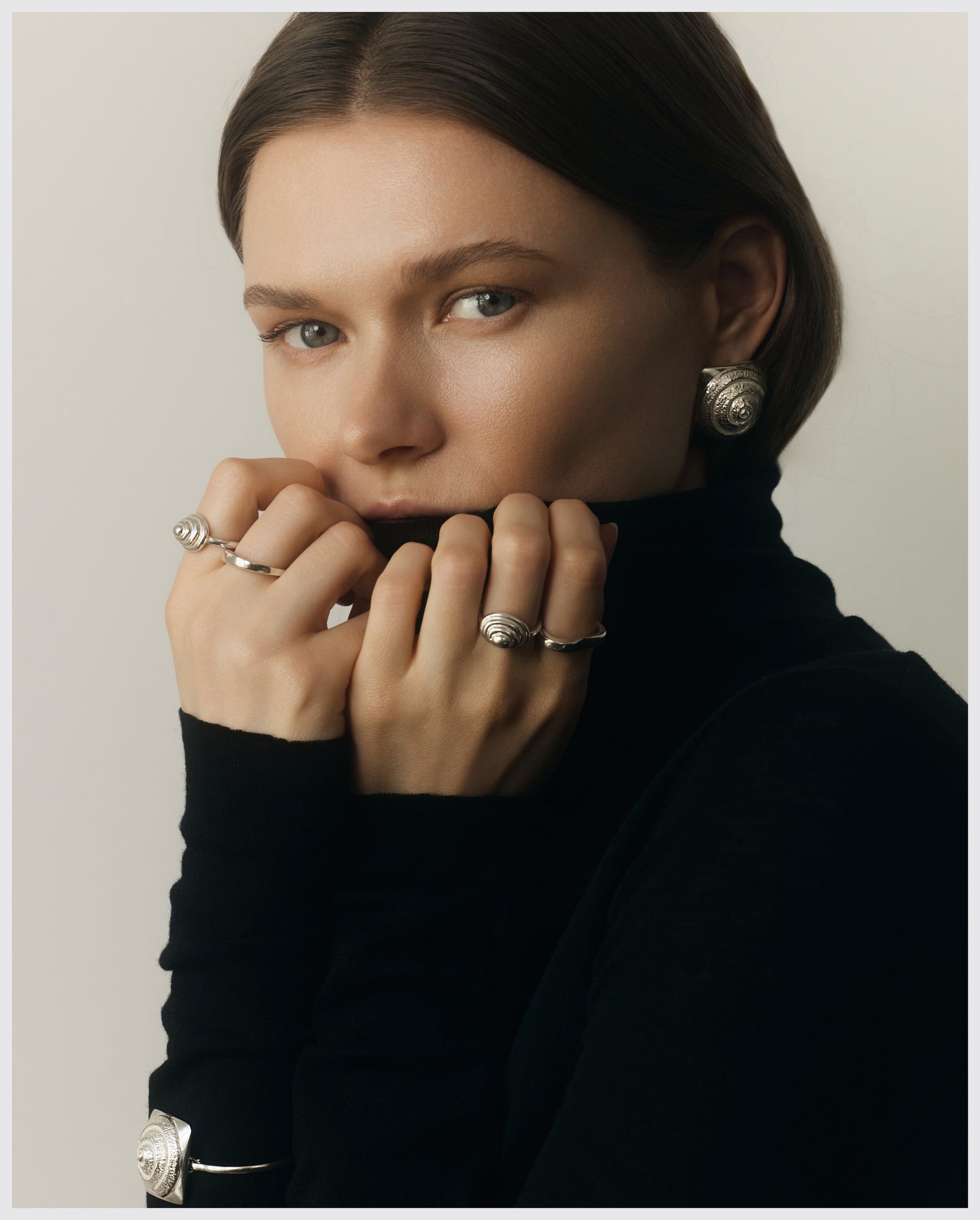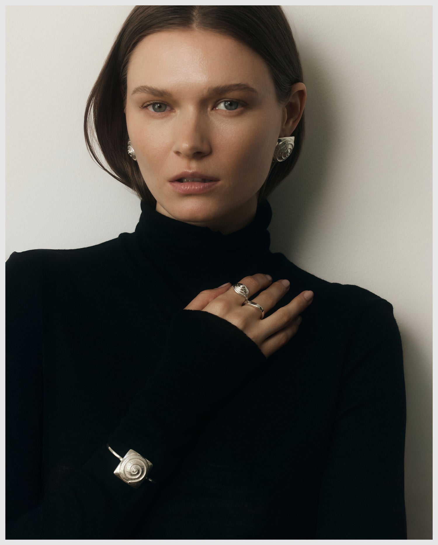 Bold, sculptural, and seamlessly modern — the Keilowa Bracelet translates Julia Keilowa’s coiled “skrętaszek” motif into a striking wrist adornment. Its fluid, spiral form wraps gently around the wrist, recalling the geometric precision of Keilowa’s designs while offering a contemporary statement piece.