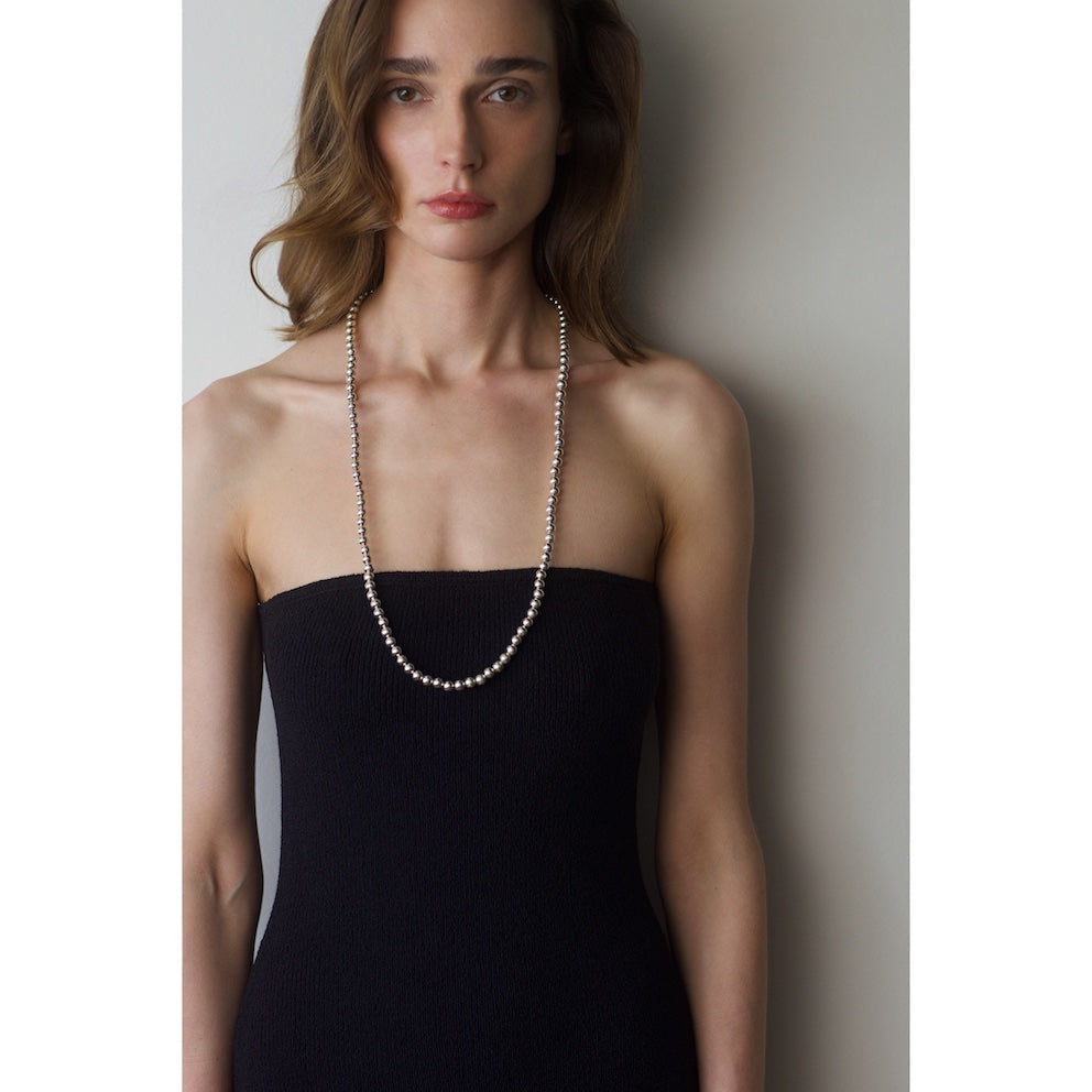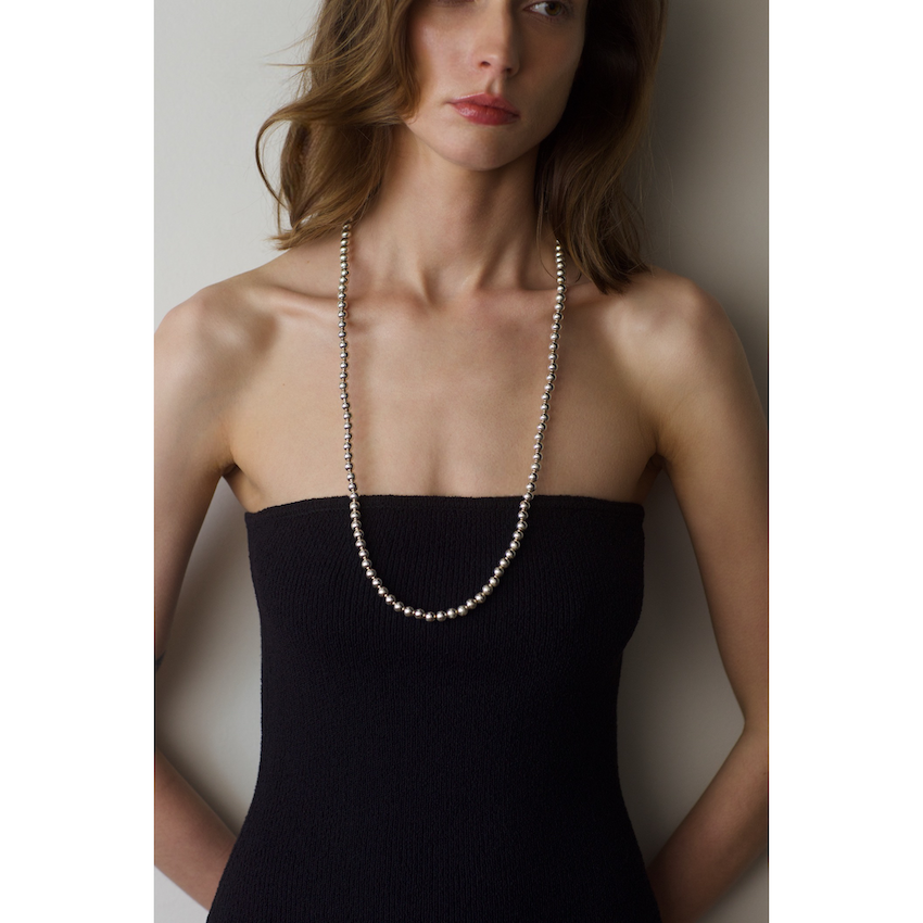 Add a touch of sophistication to your ensemble with this stunning ultra, long necklace crafted from 925 sterling silver, shiny beads.