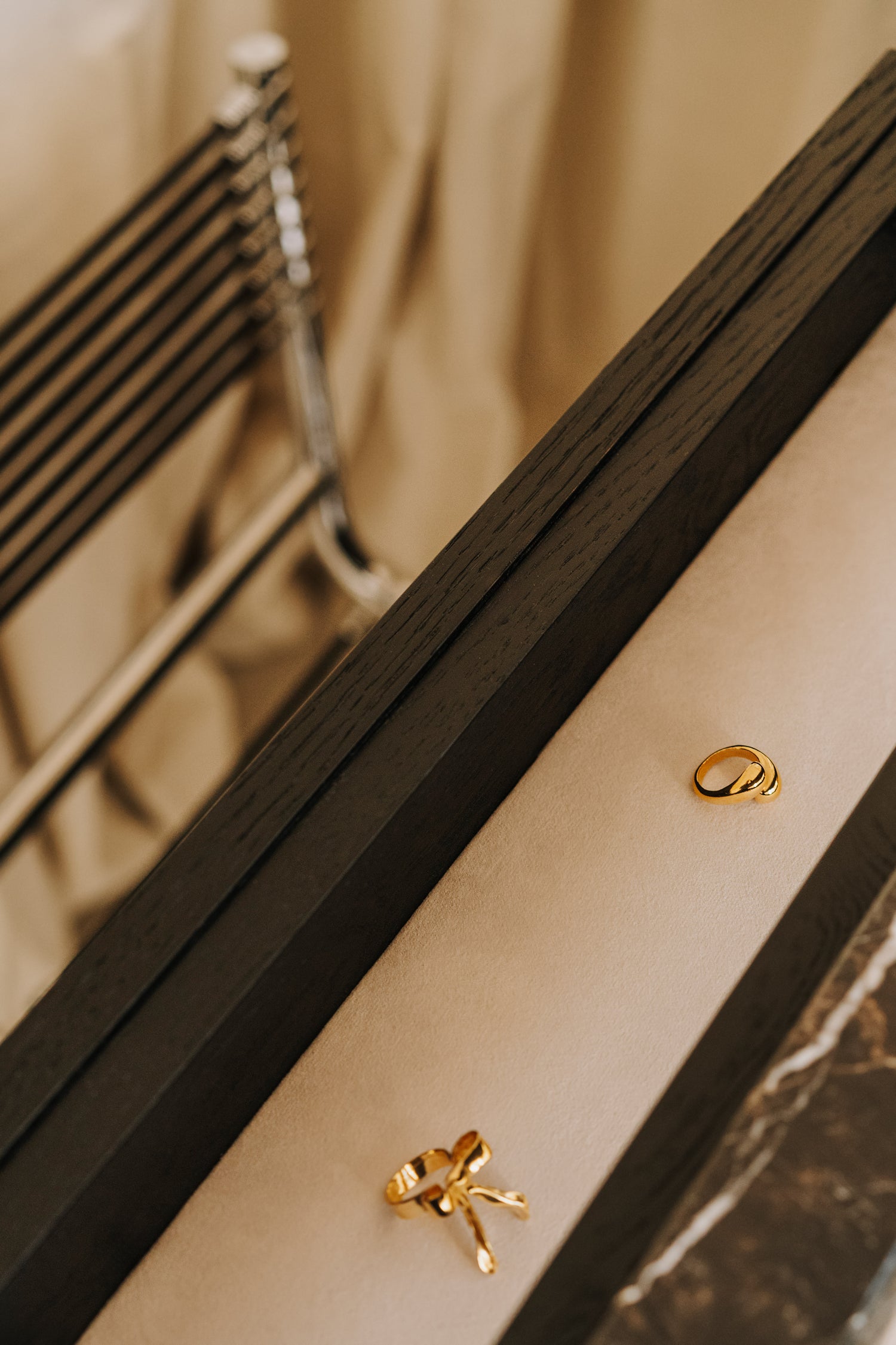 PARELPAREL Lawrence Ring is one of our signature bestsellers – a statement piece that beautifully merges organic form with fine craftsmanship. Hand-carved from 925 sterling silver and finished with a radiant layer of 24k gold plating, this ring reflects the soft asymmetry of nature and the quiet power of emotion.
