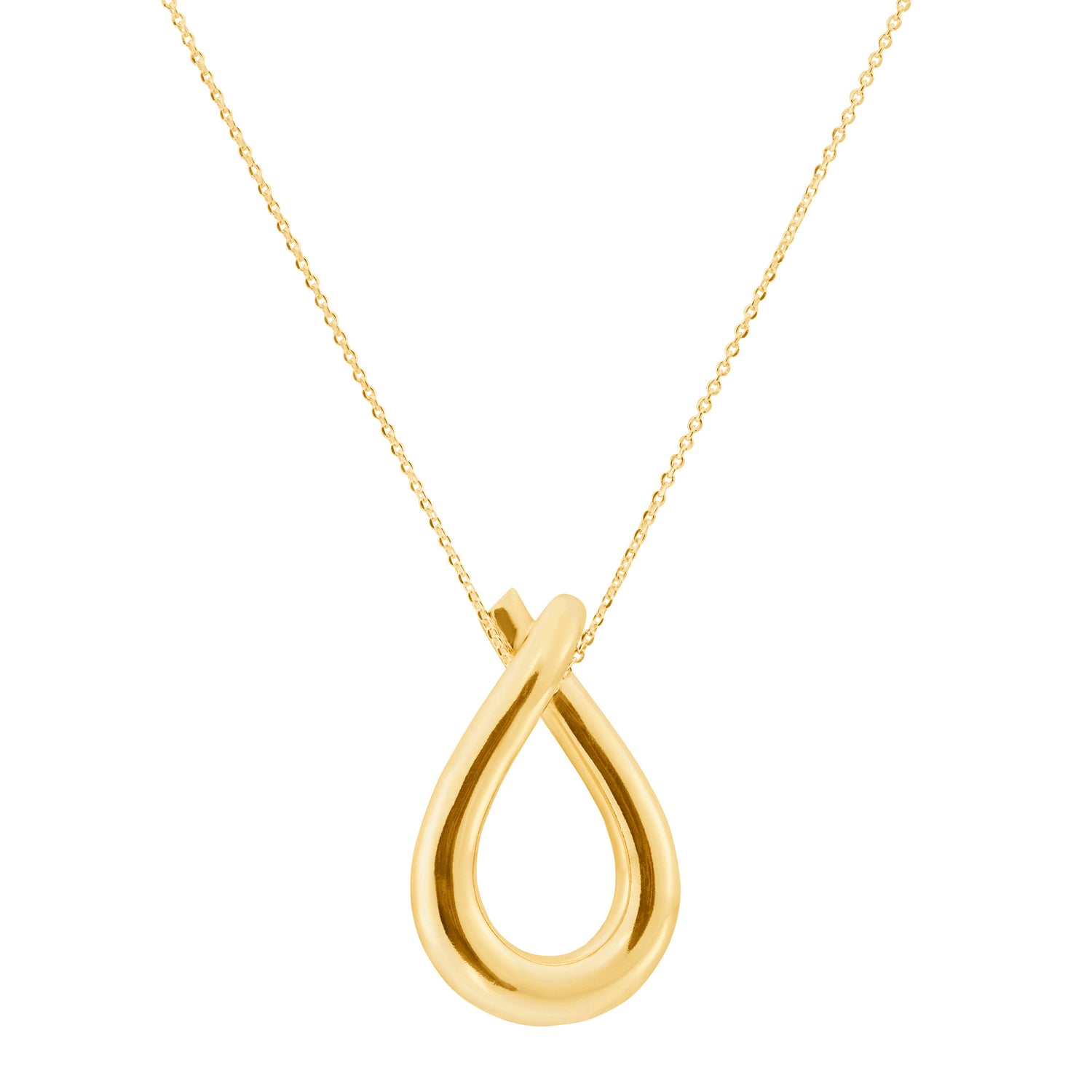 Introducing our gold loop-shaped pendant necklace, a timeless design that embodies understated elegance and exceptional craftsmanship. Carefully crafted using the lost-wax casting technique, this pendant showcases a fluid, organic shape that adds a sculptural dimension to your jewelry collection.
