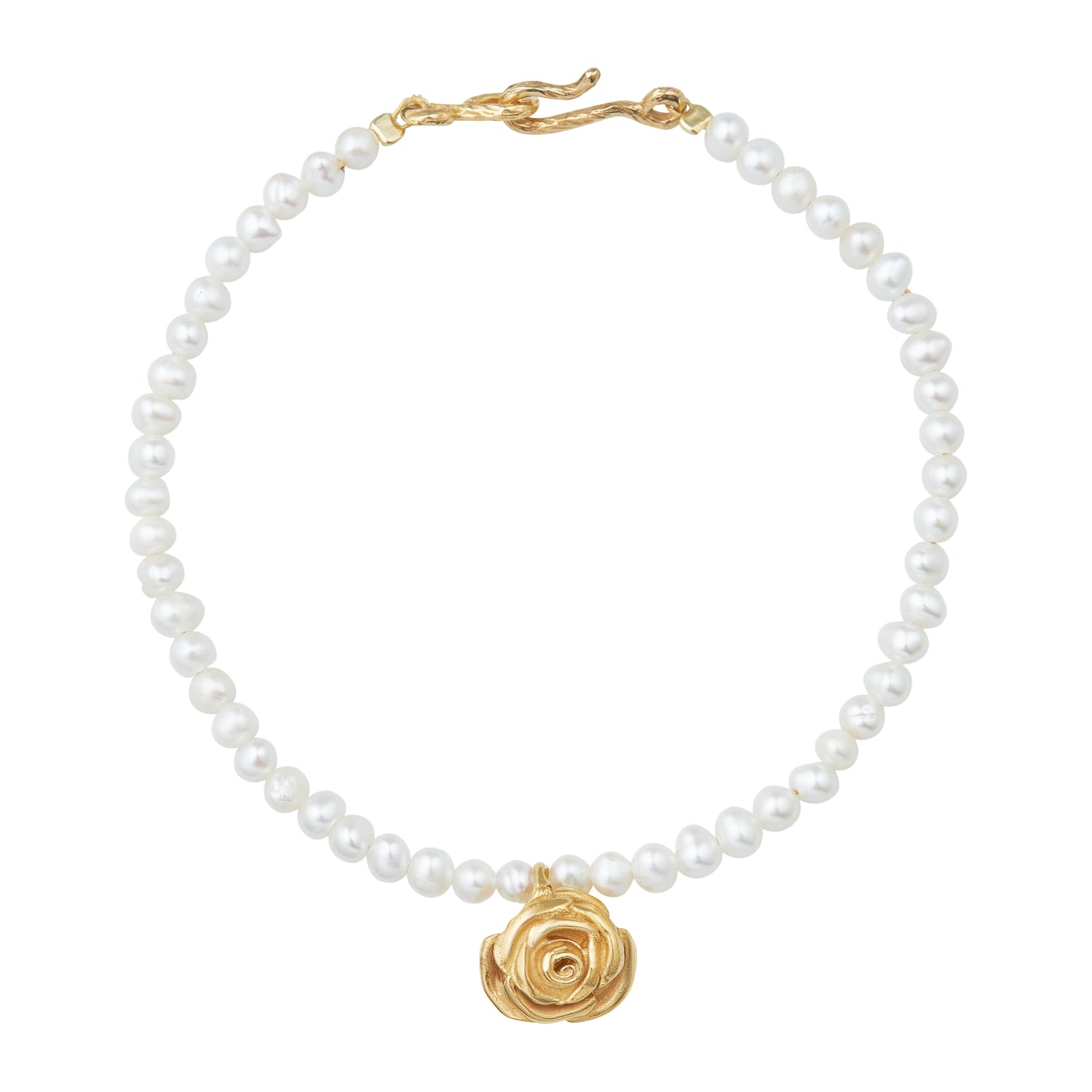 Design: Freshwater pearls with a sculptural Mallo Rose detail