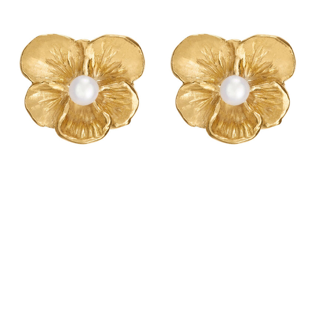 Pansy Earrings – 24k Gold-Plated 925 Sterling Silver with Pearl, Handcrafted in Poland