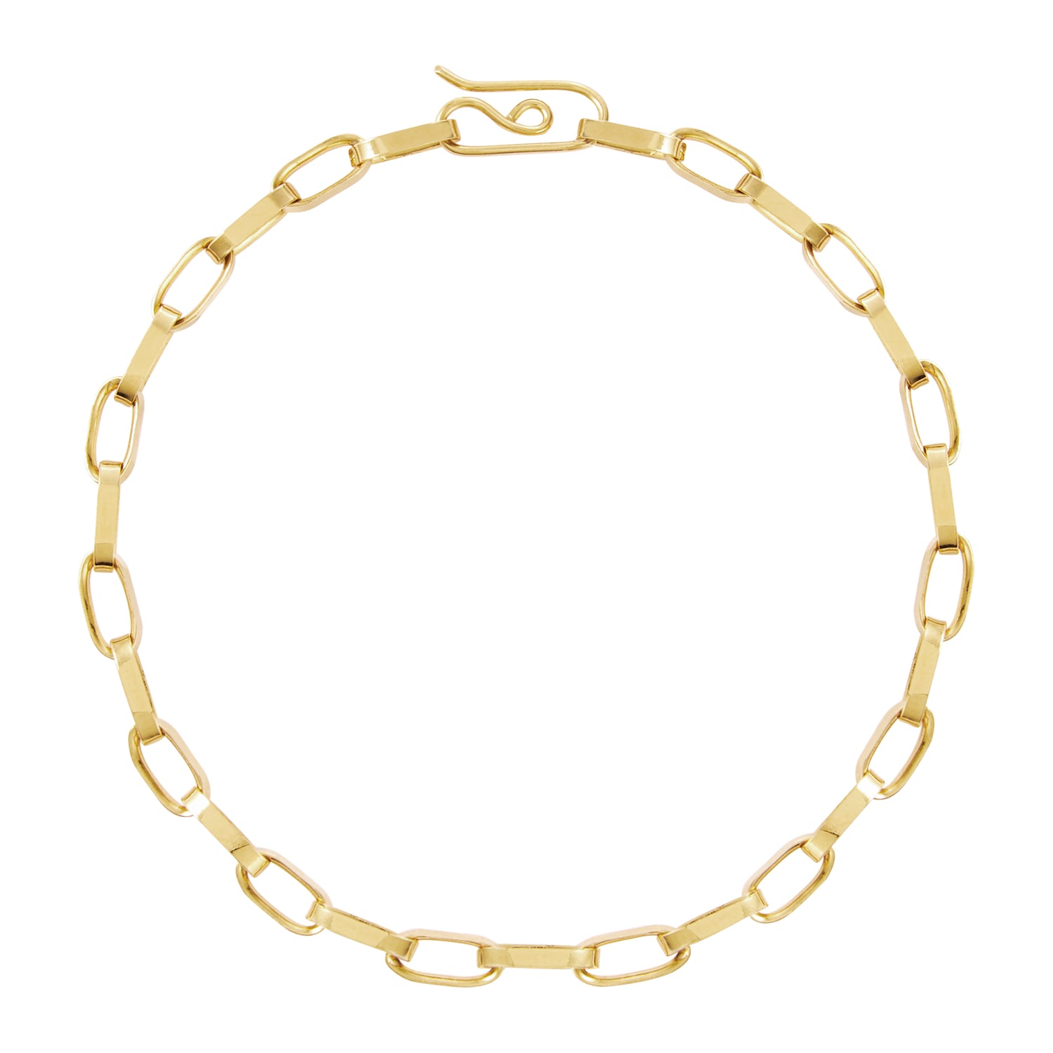 A bold interpretation of modern artistry, the Golden Geometry Bracelet draws inspiration from “Being” (1926) by Agnes Pelton — a visionary work filled with fluid forms, inner light, and quiet power. The bracelet’s irregular chain links echo the painting’s organic rhythm, creating a piece that feels sculptural, symbolic, and alive.