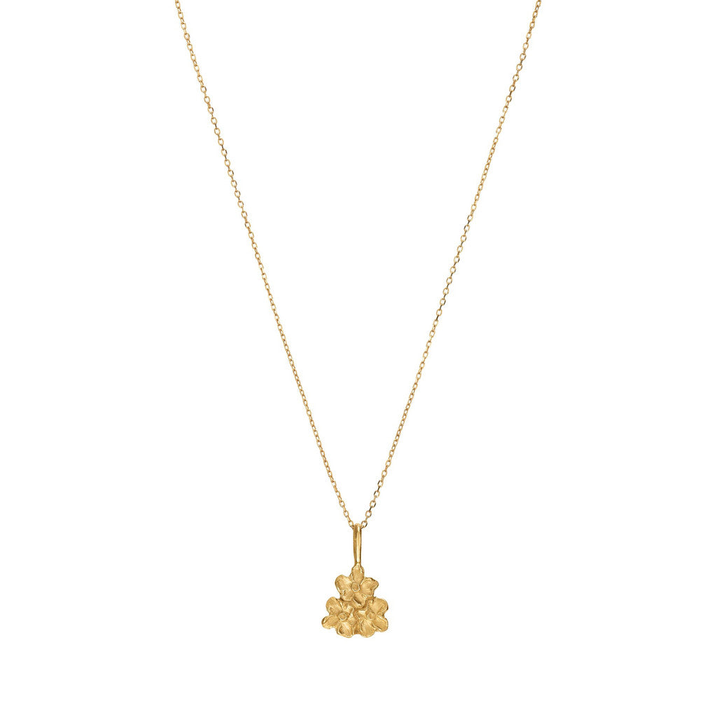 The bouquet-shaped medallion is handcrafted from 925 sterling silver and coated in a rich layer of 24k gold plating, using the traditional lost-wax casting method for refined sculptural precision. Measuring 1.3 cm in length and 1 cm in width, it is suspended from a long 60 cm sterling silver chain, allowing it to rest gracefully over the chest as a subtle statement of beauty and symbolism.